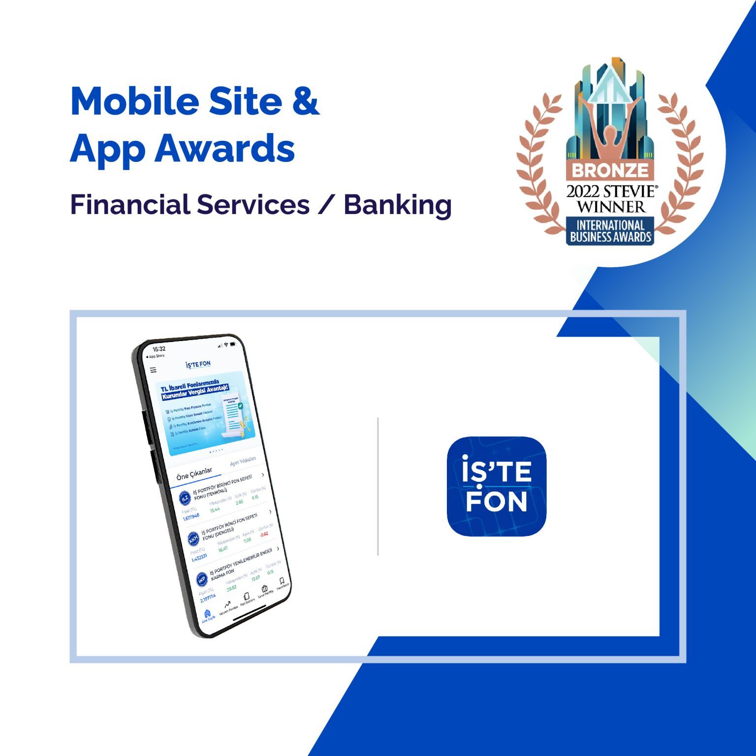 İs Portfoy’s mobile app İş’te Fon won the bronze medal in the Mobile Site and App Awards at the Stevie Awards. We’re proud both of the award and in our part in helping Portfoy on their digital journey in what was a truly fulfilling collaboration.