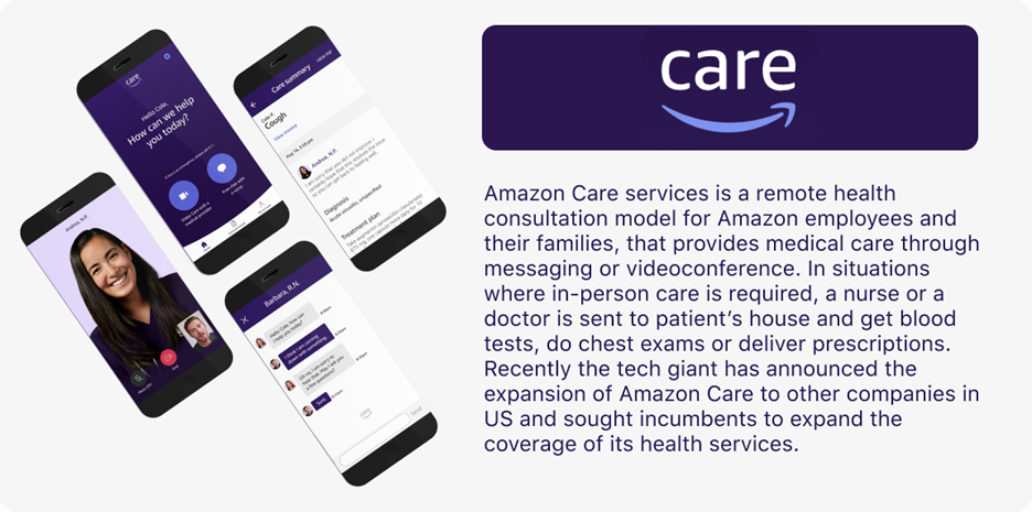 Integrating telehealth into existing services can be given as an example of how big tech players are adopting customers’ needs and becoming a part of their journey. While the use of telehealth services had been minimal prior to covid, interest and implementation of it has exploded in response to address accessibility concerns the patients have during the pandemic crisis. These concerns have increased the demand for virtual 24/7 consultation and treatment for primary care needs that were previously done in person. Correspondingly non-traditional players have entered to direct-to-consumer healthcare market such as Amazon and CVS, and challenged the status quo by leveraging telehealth solutions.