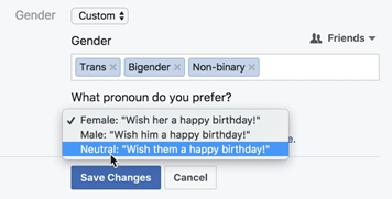 Facebook, for example give multiple options for selection of gender and option to select pronoun preference.
