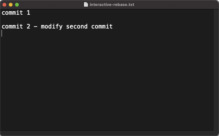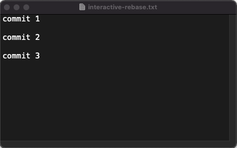 I created a file called interactive-rebase.txt and made changes with 3 different commits.