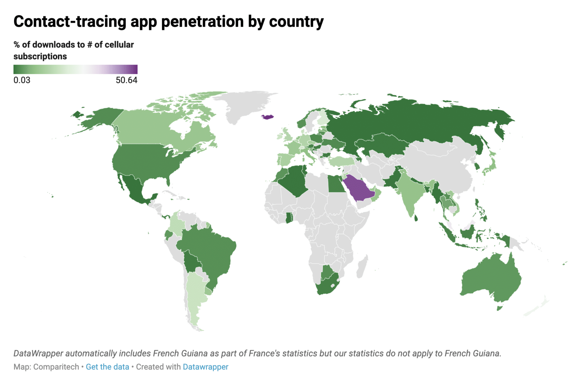 But more than that, there is some evidence that Europeans are simply less likely to trust their own governments – or any private service – to provide the levels of protection and security that they require. During the pandemic, most countries offered contact tracing apps for people to follow and download for their own health, and Europe performed notably worse than most other countries in the dataset: